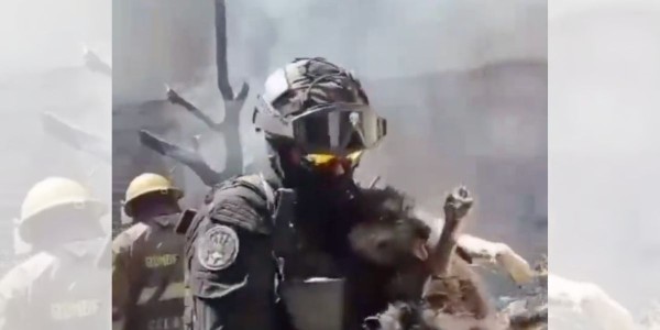 Celaya.- En Celaya fue rescatado un perrito luego de que el patio de su hogar se incendiara, fueron elementos de Policía Municipal adscritos a Grupos Operativos Especiales de Seguridad quienes le salvaron la vida.