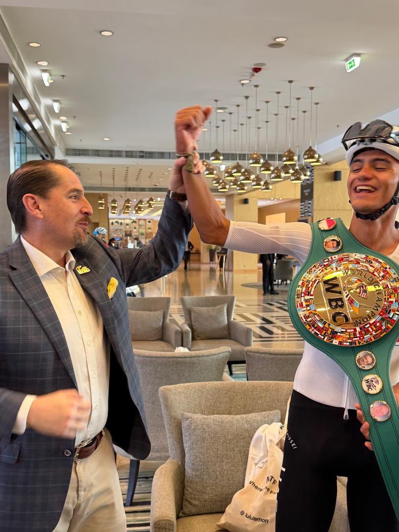 Ruanda.– En vísperas de su participación en la prueba de ruta del Campeonato Mundial de Ciclismo, el joven ciclista mexicano Isaac del Toro recibió un homenaje especial por parte del Consejo Mundial de Boxeo (CMB), reconocimiento a su brillante desempeño en 2024.
