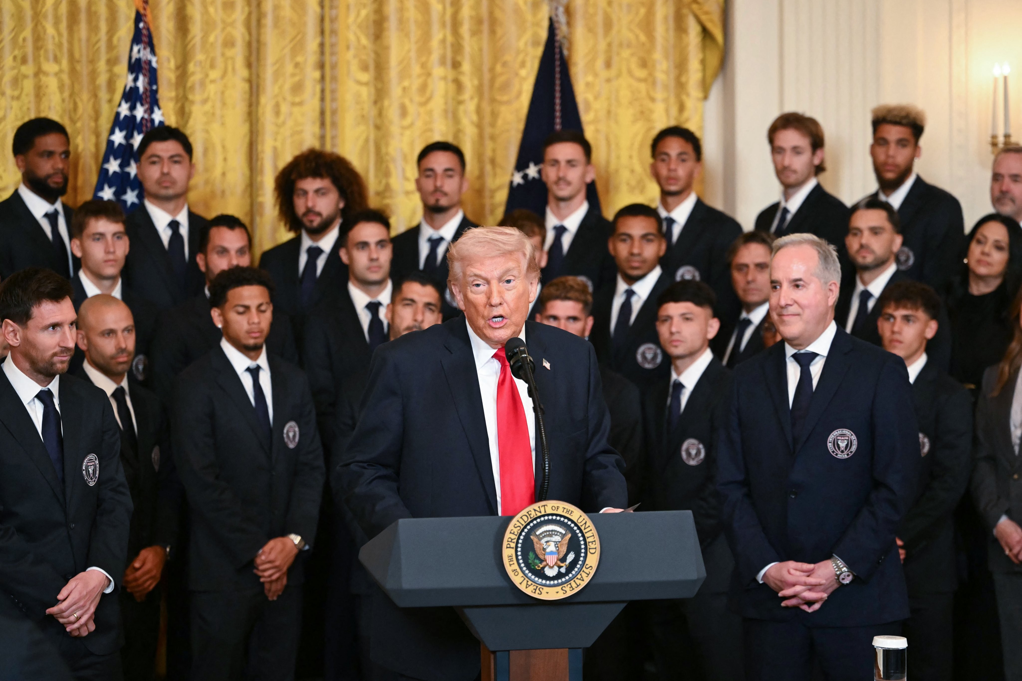 Durante su discurso, Trump comenzó reconociendo el logro del equipo campeón. “Nos gustan los campeones. Nos gustan los ganadores”, expresó el mandatario mientras los jugadores del Inter Miami permanecían detrás de él.