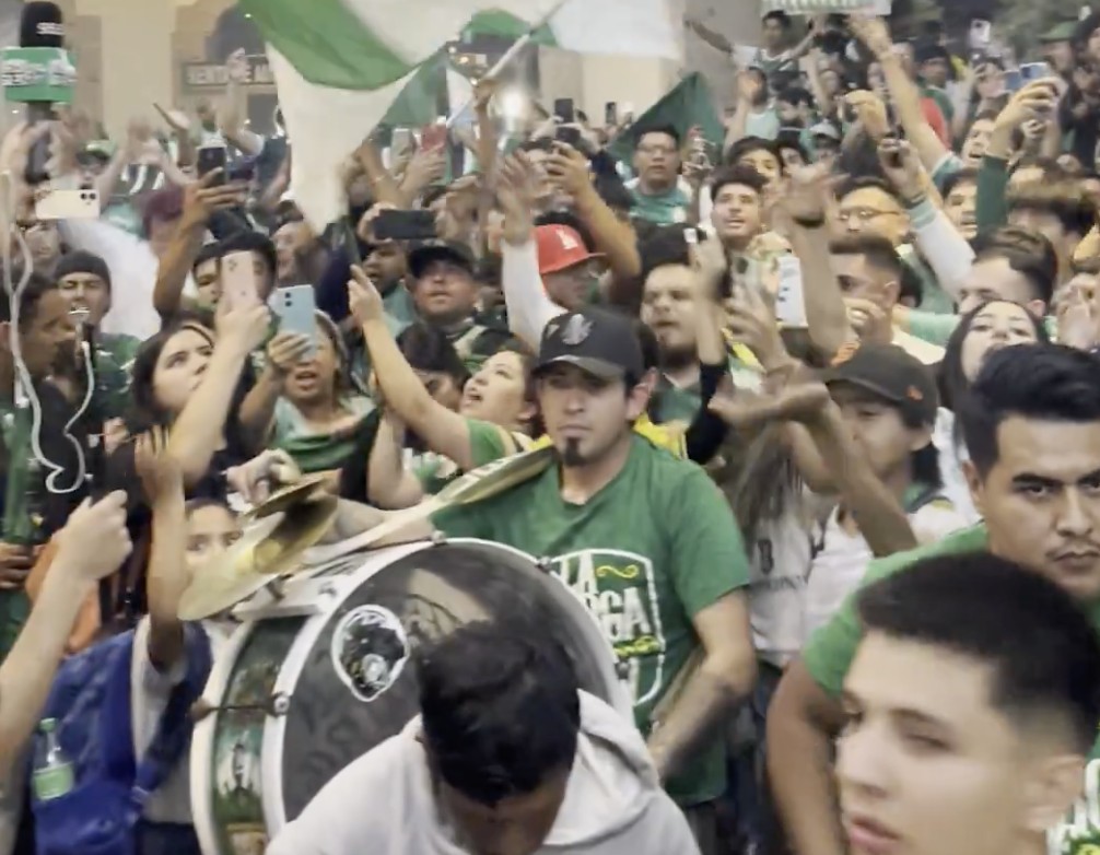 León.- Una auténtica locura se vivió esta noche en el hotel de concentración del Club León, donde cientos de aficionados protagonizaron un multitudinario banderazo y serenata al plantel esmeralda, previo al duelo ante el campeón Toluca.