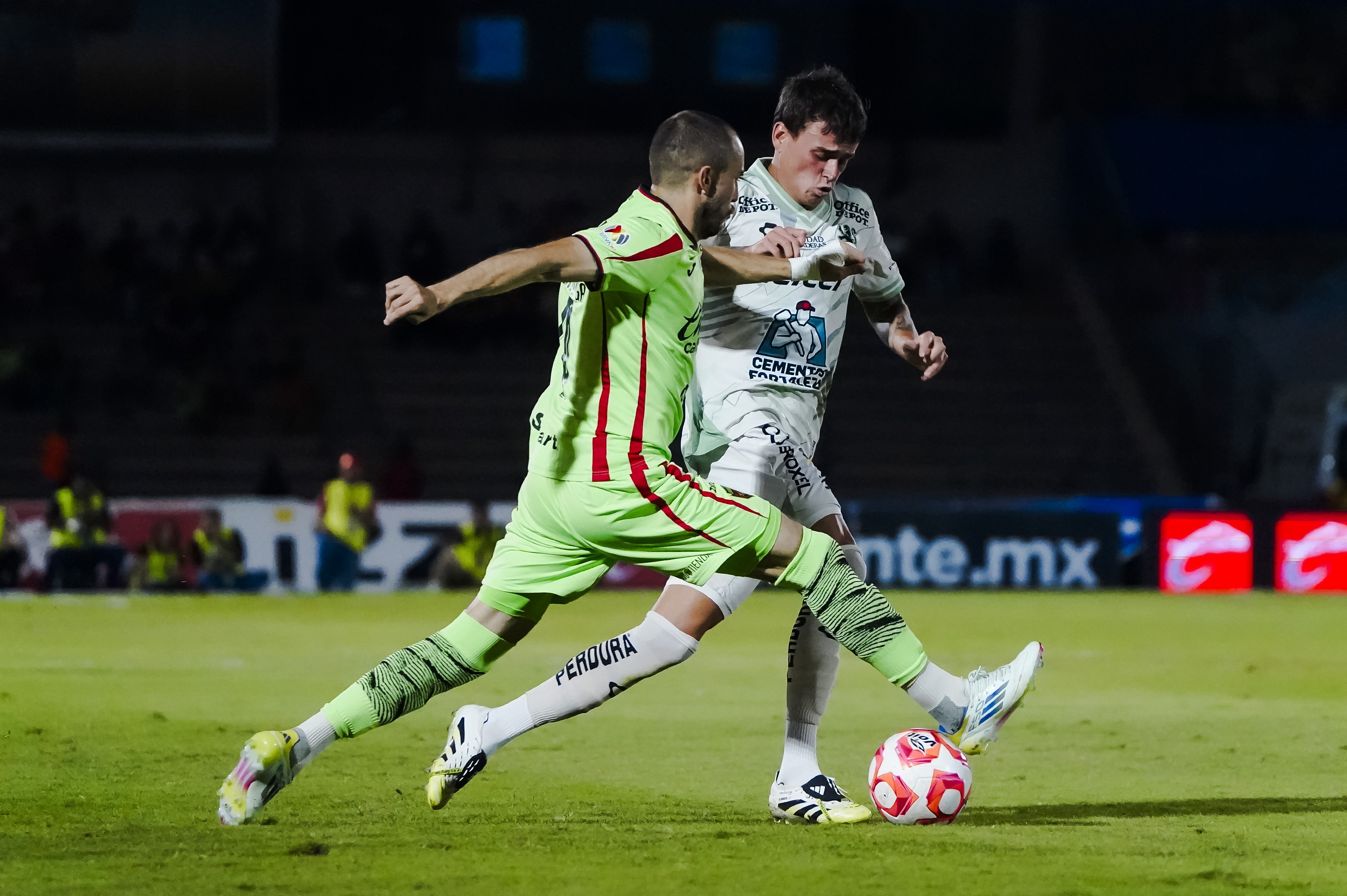 León apenas tuvo una aproximación clara pasada la media hora, cuando Sebastián Santos desbordó por derecha y envió un centro a “James” que no logró concretar. La polémica llegó al minuto 40, cuando Santos cometió una falta en el área sobre Gilherme Castihlo; tras la revisión en el VAR, el árbitro Mario Terrazas marcó penal, mismo que Óscar Estupiñán convirtió en el 1-0.