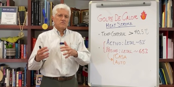 “Hay que decir que este golpe de calor que se conoce como activo es de buen pronóstico, la mortalidad no excede del 5 por ciento. El que es más peligroso por mucho es el golpe de calor pasivo, cuando estás encerrado en un automóvil y la temperatura sube por encima de los 40 grados, típicamente es gente de edad avanzada que vive sola en algún departamento, empieza a subir la temperatura y después de algún tiempo puede colapsar y morir”, dijo.