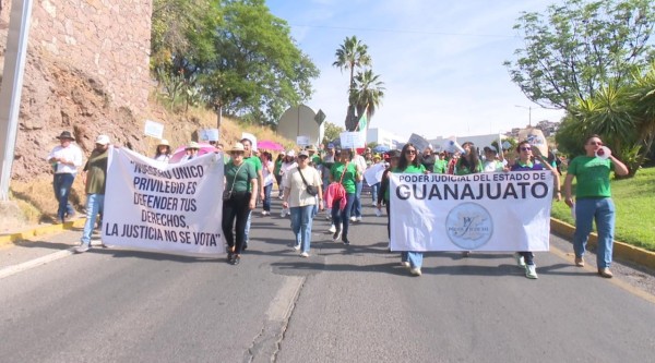 Exigen jueces estatales respetar amparos y suspensión contra reforma judicial[/caption]En la protesta participaron alrededor de 200 trabajadores del Poder Judicial del Estado, quienes caminaron desde la sede central hasta la Plaza de la Paz, a poco más de un mes de que la reforma fuera publicada en el Diario Oficial de la Federación. “En el Poder Judicial del Estado de Guanajuato estamos seguros que es una humillación el espectáculo que vimos el sábado pasado: la tómbola. Decidir en una tómbola el destino de 800 juzgadores, el destino de familias de juzgadores. Y no nada más el destino de ellos y de ellas, sino el destino de toda la ciudadanía porque tener jueces votados no es garantía de una calidad en la impartición de justicia”, señaló.Para que la reforma sea armonizada en el estado, el Congreso Local tiene como plazo hasta marzo de 2025.[caption id="attachment_164443" align="aligncenter" width="1024"]