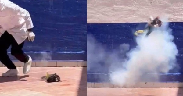 En las fotografías compartidas por la misma asociación, puede verse a un joven con bata cargando el cuerpo de un gato con heridas y quemaduras, y en otra imagen se observa al animal mientras le prenden explosivos.