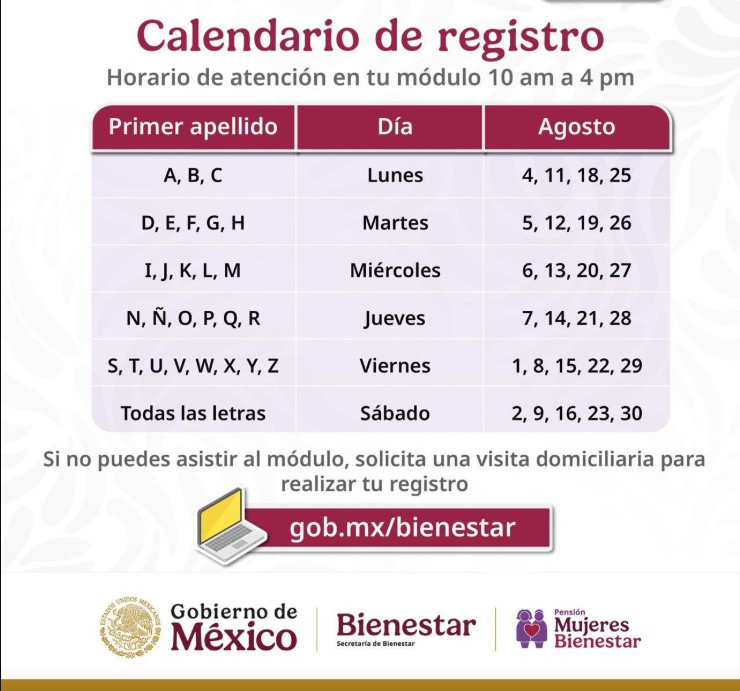 Para facilitar el proceso, la Secretaría de Bienestar organizó las inscripciones según la inicial del primer apellido, comenzando el 1 de agosto con las letras S a Z.