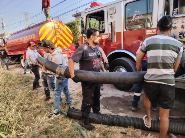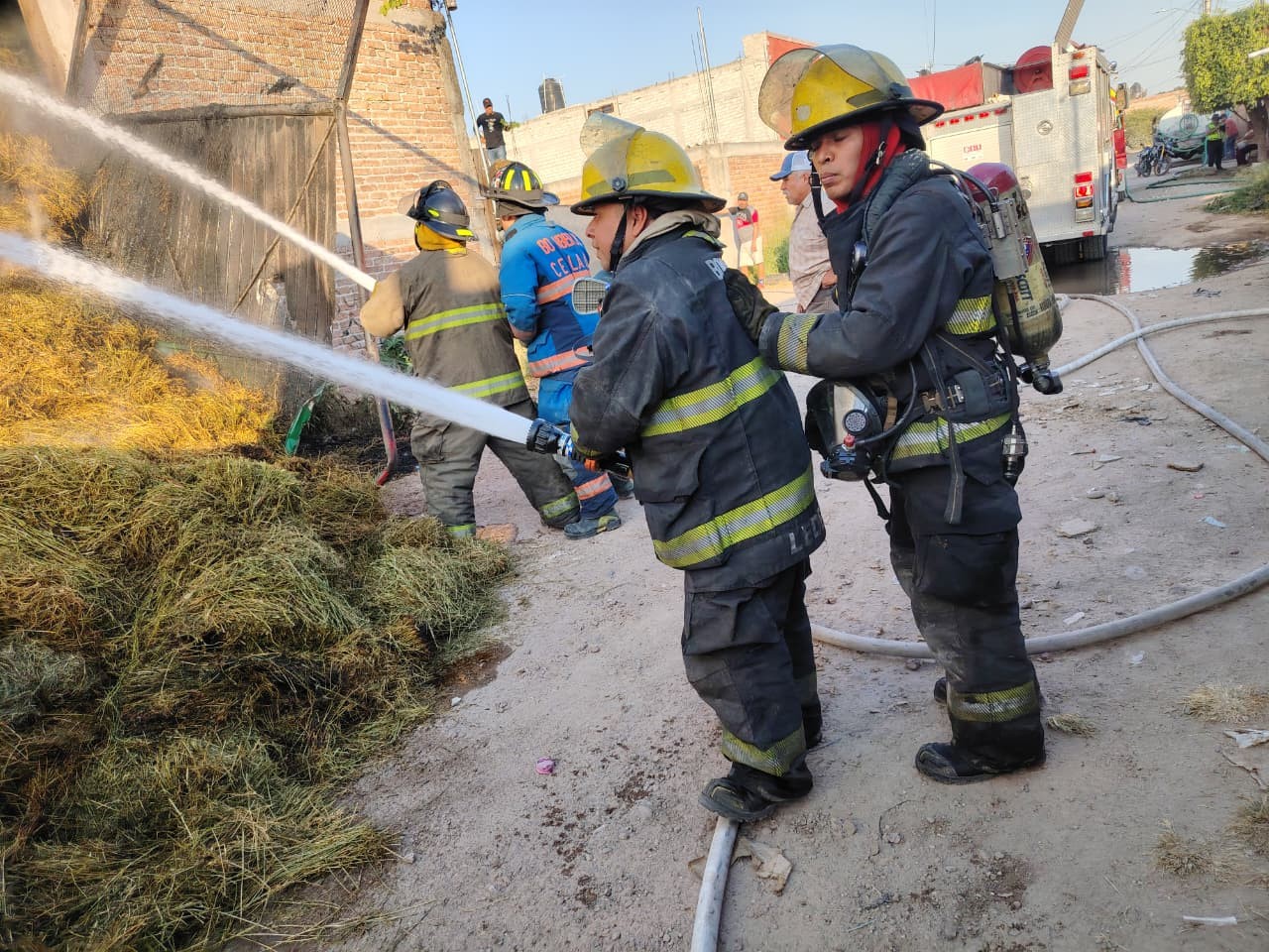 Celaya.- Los Bomberos y Protección Civil de Celaya combaten el incendio de una bodega de pacas ubicada en la comunidad San Miguel Octopan; por este motivo, no pudieron participar en el desfile conmemorativo del 20 de noviembre.