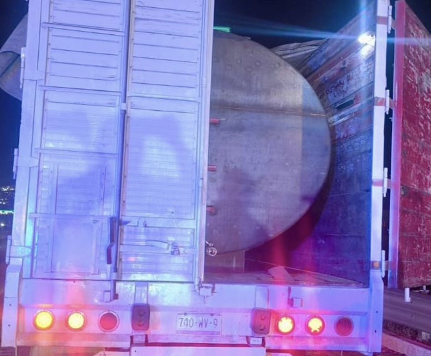 Querétaro.- Elementos de la Secretaría de Seguridad Pública Municipal de Corregidora, en coordinación con el C4, realizaron el aseguramiento de un vehículo de carga pesada que trasladaba un contenedor con aproximadamente 20 mil litros de hidrocarburo, sin contar con la documentación correspondiente.