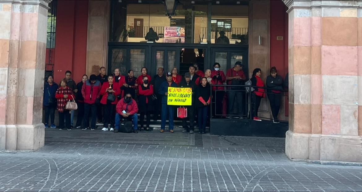 Desde las 7:00 a.m., los manifestantes desplegaron consignas como “¡No somos pobrecitos, somos jubilados!” y “Derechos adquiridos no son negociables”, mientras impedían el paso a empleados municipales, incluido Jesús Paz, secretario particular del alcalde.