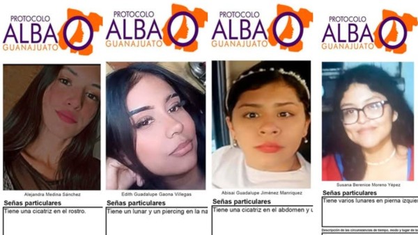 Guanajuato.- Este sábado 11 de abril fueron publicadas fichas de búsqueda de cuatro mujeres reportadas como desaparecidas en distintos municipios de Guanajuato, como parte del caso de desaparición de mujeres en Guanajuato, de acuerdo con el Protocolo Alba.