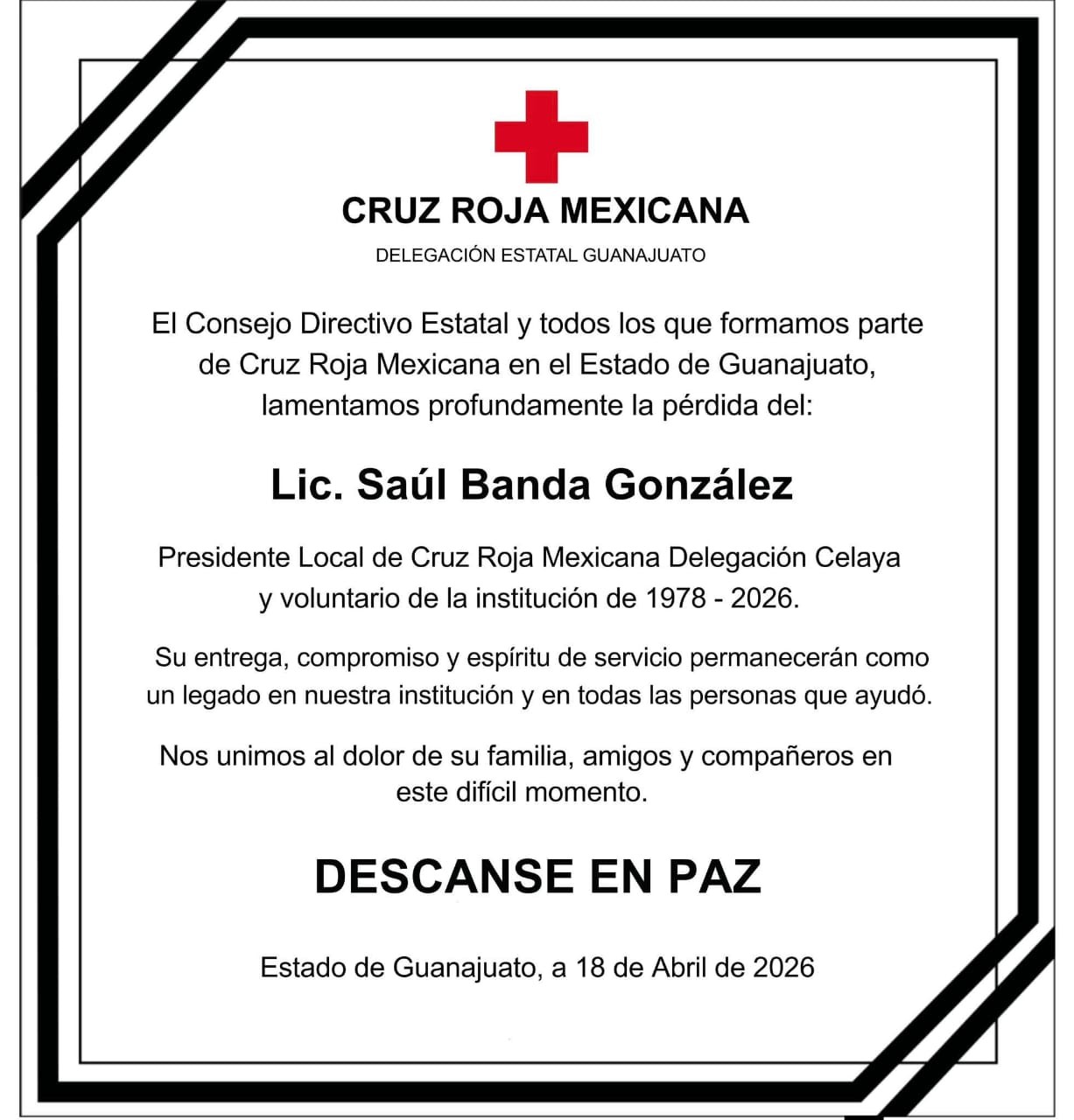 Celaya.- El Presidente Local de Cruz Roja en la Delegación Celaya, Saúl Banda González murió tras de un paro cardiaco luego de sufrir un intento de asalto este sábado.