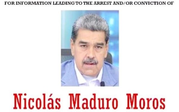 La Administración de Control de Drogas de los Estados Unidos (DEA, por sus siglas en inglés) publicó un cartel de recompensa de hasta 25 millones de dólares por información que conduzca al arresto y condena de Nicolás Maduro Moros, actual presidente de Venezuela.
