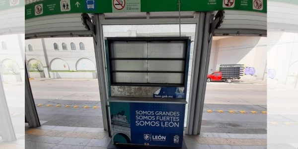León.- Durante la madrugada de este viernes fueron robadas las pantallas de dos paraderos del Sistema Integrado de Transporte, ubicadas sobre el bulevar Adolfo López Mateos, la vialidad más transitada de León.