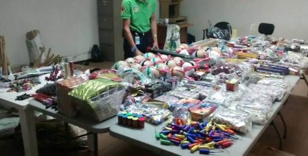Entre lo asegurado están castillos, bombas, chisperos, cohetes de luz, toritos, figuras de estrella, barrenos, hulk, coronas, lanzadores, artificios, luces de bengala, cebollitas y buscapiés, entre otros.En los operativos para inhibir la quema de estos artificios, participan también la Policía Preventiva e inspectores de la Dirección de Comercio y Abasto, puesto que para la venta de pirotecnia se requiere de un permiso expedido por la Secretaría de la Defensa Nacional (SEDENA).