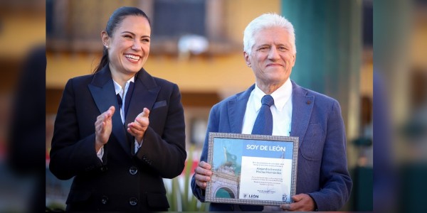 León.- Esta mañana, el doctor Alejandro Macías Hernández fue reconocido por la presidenta municipal de León, Ale Gutiérrez Campos, con el distintivo ‘Soy de León’, debido a su destacada trayectoria y aporte en materia de salud.