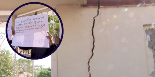 Falla geológica genera grietas en barda de escuela en Las Huertas; una de las soluciones a este problema fue la colocación de aulas móviles[/caption] María Guadalupe, una de las madres de familia inconformes, señaló que una de las soluciones a este problema fue la colocación de aulas móviles. Sin embargo, afirma que también son un riesgo.“Pues la verdad es muy insegura. Ella está (su hija) en una de las aulas móviles, ya ha habido varios accidentes; una niña se fracturó el brazo cuando bajaba las escaleras. Tienen unas escaleras que ni tienen pasamanos. Es algo inseguro”.