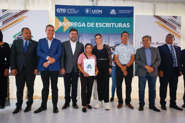 Reciben más de 300 familias leonesas las escrituras de su hogar[/caption] En ese sentido, la presidenta municipal, Alejandra Gutiérrez, agradeció el trabajo conjunto pues destacó que de esa manera se cambia la calidad de vida de las y los leoneses para que puedan vivir tranquilos, sanos y mejor. Agradeció al IMUVI porque en lo que va de la presente Administración, se han entregado 2 mil 100 escrituras en beneficio de 6 mil 930 personas y se han logrado regularizar 29 zonas.“El saber que ya tienes la escritura y que ya puedes dormir tranquilo porque ese patrimonio va a ser de tu familia hace la diferencia, pero no solamente es eso, sino también que esté regularizada para que podamos entrar poco a poco con la parte de los servicios, ese es un reto, tenemos que entrarle con pavimentación, con agua, con luz, con todo lo que se requiere para que ustedes tengan una calidad de vida”, mencionó.Ale Gutiérrez agradeció a la ciudadanía por confiar en el gobierno municipal para cumplir sus sueños y dijo que seguirán trabajando en diversos programas para cambiar el rostro de León. Por ejemplo, anunció que habrá más recursos para becas, se fortalecerá el servicio de 'Médico en Tu Casa' y habrá más espacios públicos gratuitos para que todos puedan disfrutar. A la entrega de escrituras asistió el secretario de Gobierno de Guanajuato, Jesús Oviedo Herrera, quien felicitó a las 350 familias por obtener las escrituras de su hogar. /LT