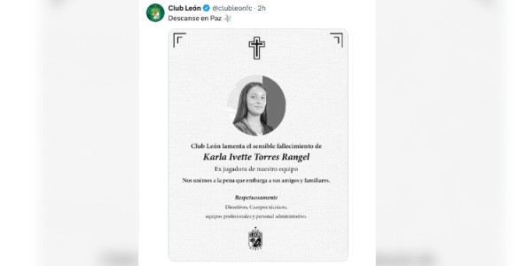 Identifican a joven que murió en accidente en Las Torres; era estudiante de La Salle y exfutbolista del Club León femenil[/caption] Tanto la casa de estudios como el equipo esmeralda dieron su sentido pésame a los familiares y amigos de la joven a través de sus redes sociales. Karla Ivette Torres Rangel manejaba un Jetta color blanco, modelo 2013, sobre el bulevar Las Torres, cuando pasando el bulevar Adolfo López Mateos se impactó contra un árbol y posteriormente contra un vehículo que se encontraba estacionado. El percance le arrebató la vida a la exfutbolista, y dejó lesionada a Frida Alexia, de 22 años, quien fue trasladada al Hospital General de León./ED