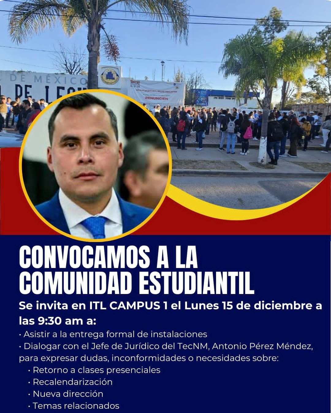 La dirección Jurídica del Tecnológico Nacional de México (TecNM) también emitió un comunicado en el que se informó que se retomaran clases presenciales este martes 16 de diciembre y piden a la comunidad estudiantil mantenerse pendientes de los comunicados oficiales.