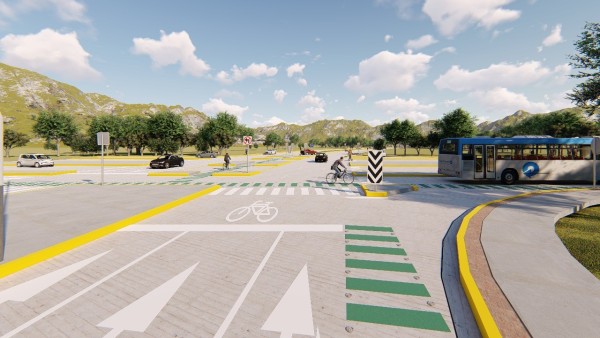 Además, a lo largo de los dos tramos nuevos del bulevar y en el tramo intermedio ya construido, se contará con una ciclovía en medio del camellón. Dicha ciclovía tendrá dos carriles y será construida con concreto y adoquín.