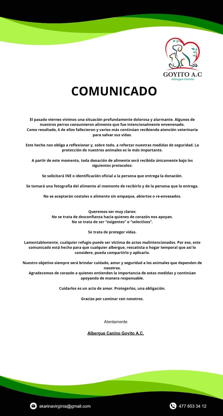 Ante esta situación, la activista solicita ayuda para los gastos de necropsia de al menos un perrito, atender al resto que sigue mal, incinerarlos y, una vez que se determine la causa de muerte, presentará una denuncia de manera oficial, aunque es complicado porque no tienen ninguna información sobre quién llevó el alimento envenenado.