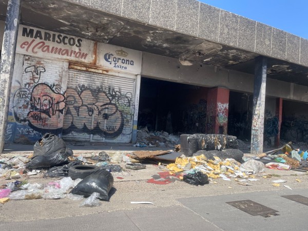 Noticieros en Línea recorrió esta calle y constató el tiradero de desechos que invaden al menos la mitad de la vialidad. Además, las banquetas están saturadas, lo que impide el paso de peatones.
