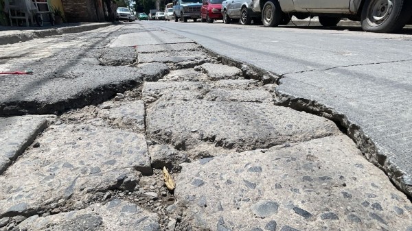 Poco antes de la esquina con calle Santa Amalia, hay un segmento de concreto que cada vez se hunde más y, con el paso de los vehículos, el problema se agrava.