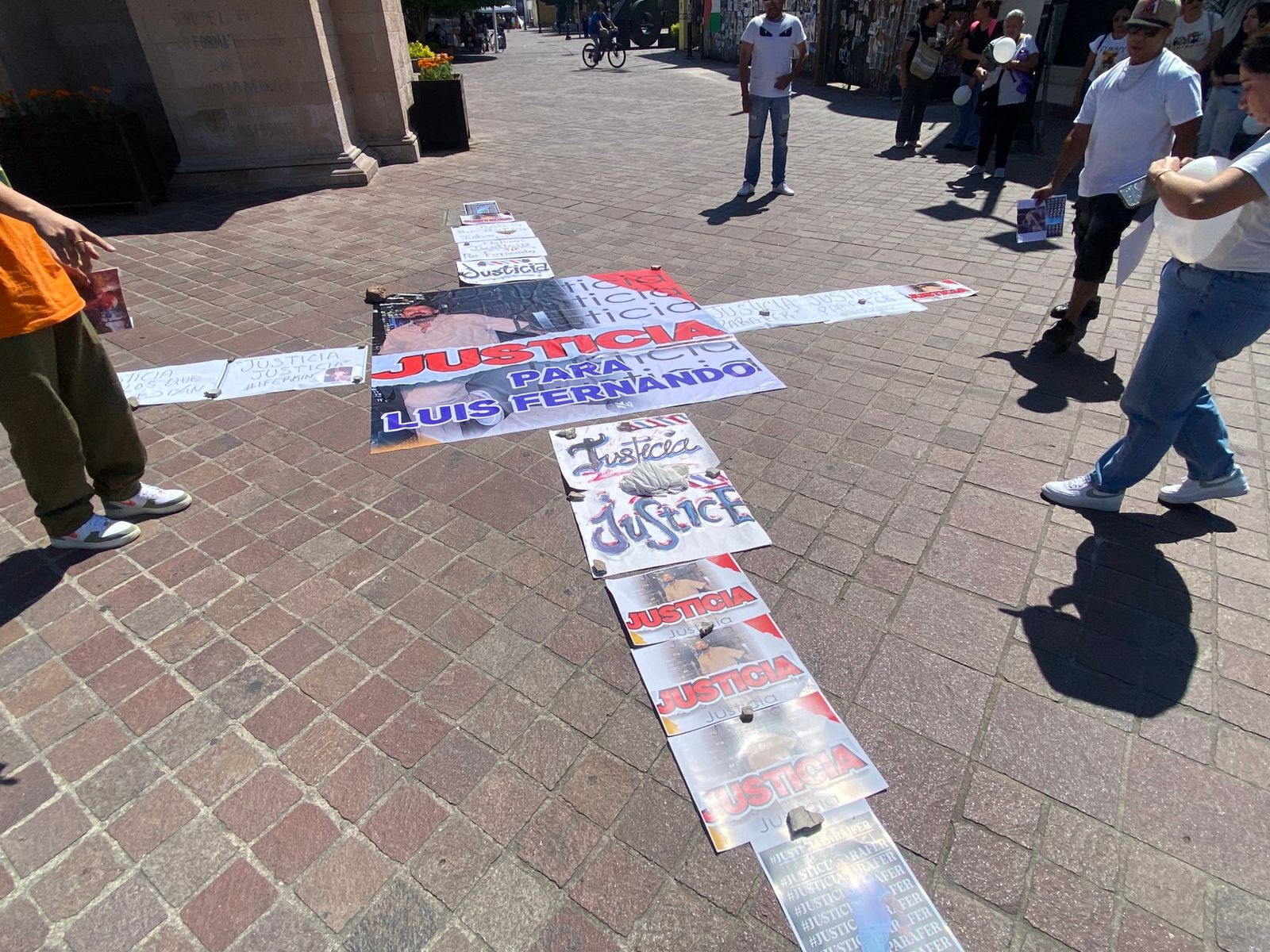 También formaron una cruz con fotos y pancartas en el piso; en el centro colocaron una imagen de Ifer King y las letras justicia en color rojo.
