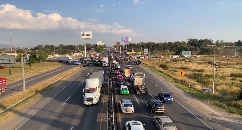 Los campesinos bloquearon los seis carriles de la carretera León–Silao, a la altura del Puerto Interior, lo que generó tráfico intenso y desesperación entre automovilistas y transportistas ajenos a la lucha agricultora.