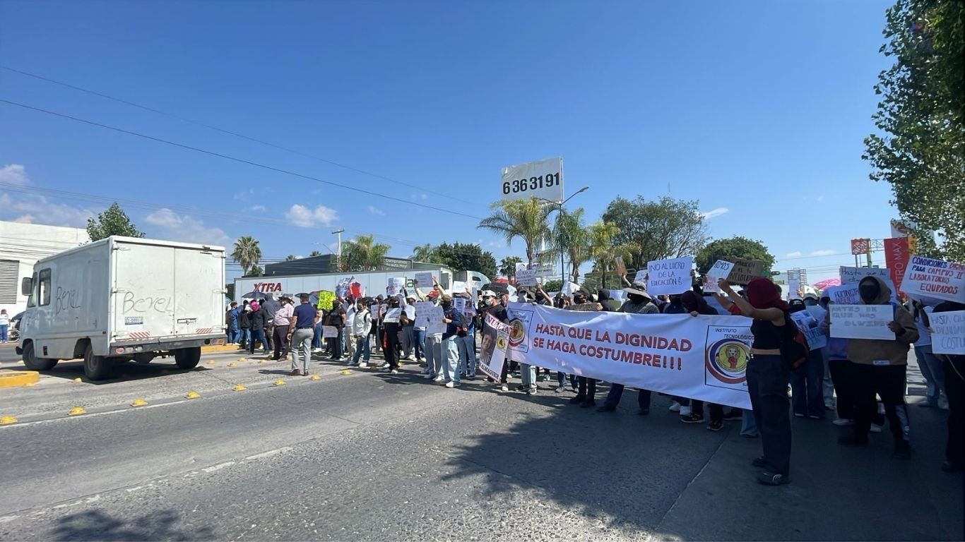 Estudiantes salieron de las instalaciones de la universidad a la 1:30 p. m., ubicada en la colonia Julián de Obregón, desde donde caminaron gritando consignas hasta llegar al bulevar López Mateos, donde bloquearon ambos sentidos, dejando pasar únicamente al transporte público y a las unidades de emergencia.