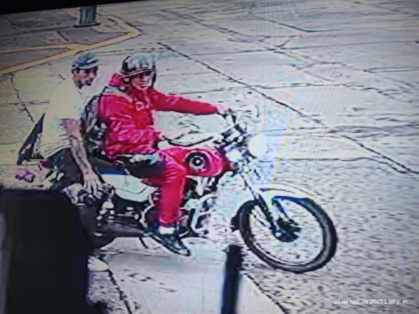 Los hombres fueron evidenciados en imágenes donde se les ve llegar a la estética a bordo de una motocicleta color roja.