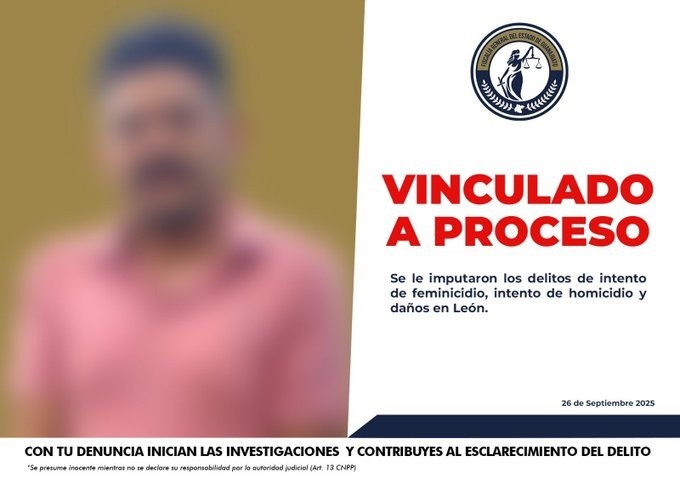 León.- Miguel Ángel “N” fue vinculado a proceso penal en León por tentativa de feminicidio, tentativa de homicidio agravado, violencia familiar y daños por incendio, tras agredir con un cuchillo a su pareja e hija y luego prender fuego a la casa donde se encontraban.