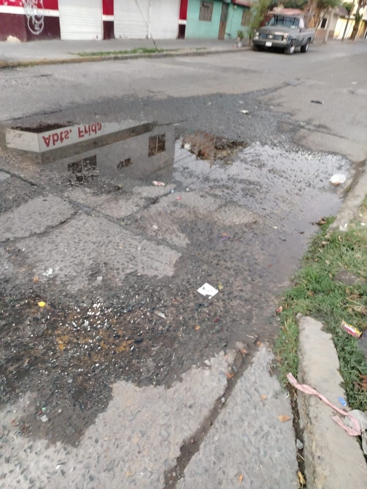 Ademàs sobre la banqueta tambièn hay una fuga de agua que tiene meses, por lo que se pide su reparación.
