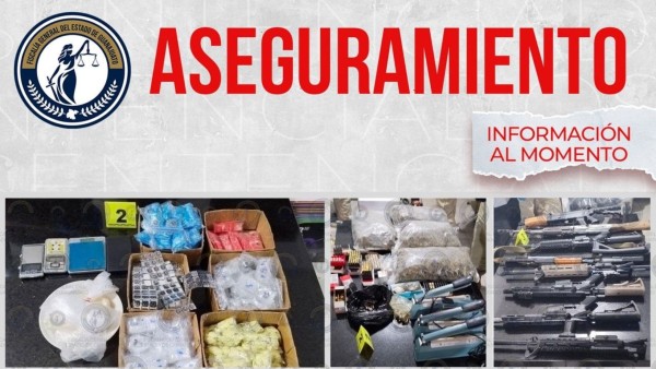 Resultados donde la Fiscalía de Guanajuato asegura arsenal y droga en León