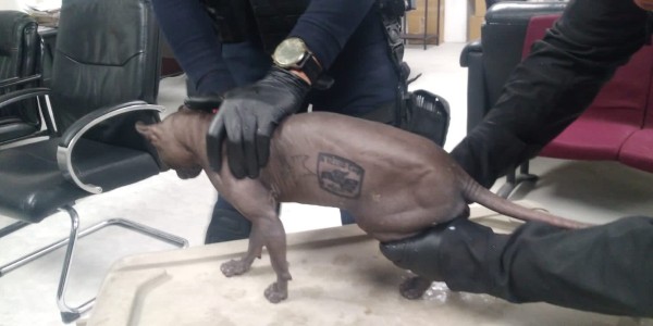 Elementos de la Secretaría de Seguridad Pública del Estado se dieron cuenta de que la piel del animal estaba tatuada con diversos dibujos, uno de ellos con la leyenda “Hecho en México”.