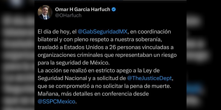 El secretario de Seguridad y Protección Ciudadana, Omar García Harfuch, ofrecerá más detalles del operativo en una conferencia programada para el 13 de agosto.