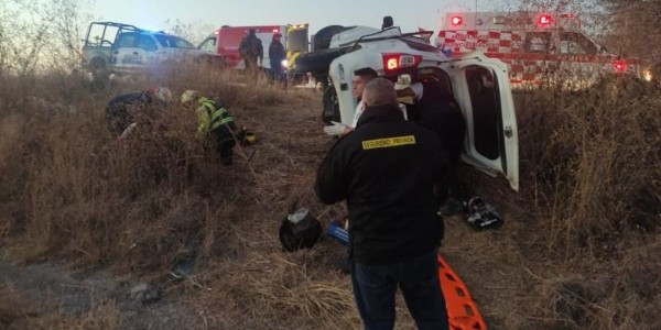 Vuelca camioneta con guardias de seguridad, hay cinco lesionados