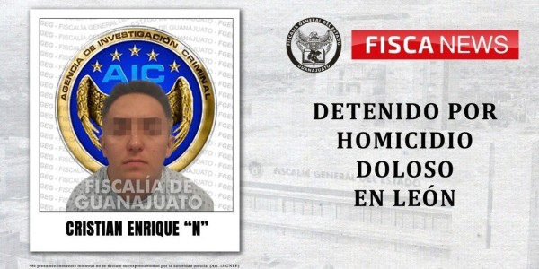 León.-   Cristian Enrique, presunto responsable del asesinato de dos adolescentes en un hecho automovilístico, ocurrido la madrugada del 22 de mayo de 2023 en León, fue detenido por la Fiscalía de Guanajuato, por el delito de homicidio doloso.