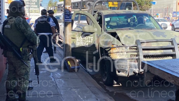 Choca patrulla de la SEDENA en la colonia Agua Azul, León[/caption]Así mismo, elementos de Policía Vial de León y equipos de emergencia llegaron al lugar y determinaron que ninguno de los efectivos federales ni los tripulantes de la camioneta resultaron heridos. Afortunadamente todo quedó solo en daños materiales. Más tarde, los oficiales viales retiraron los vehículos del cruce para no afectar más la vías de circulación en la zona y quedaron en espera de las aseguradoras de ambos vehículos involucrados.[caption id="attachment_145012" align="aligncenter" width="1024"]