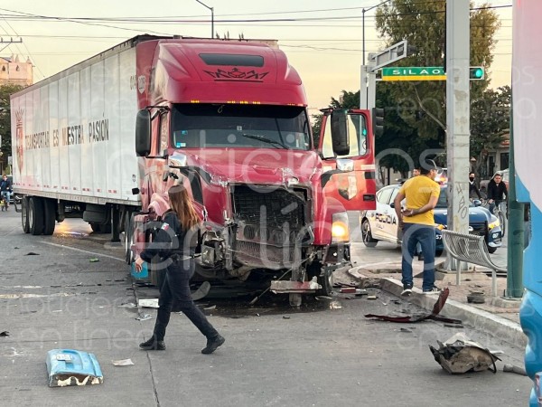 León.- Esta mañana se registró un aparatoso choque entre un tráiler y un camión del transporte público, en el bulevar Delta, a la altura de la colonia Valle de Jerez. Todo se registró cerca de las 7:00 de la mañana de este miércoles, sobre los cruces del bulevar Delta y calle Jerez de Guadalupe en la colonia ya mencionada. Según la información preliminar, el conductor del tráiler se pasó la luz roja y esto provocó el fuerte accidente.