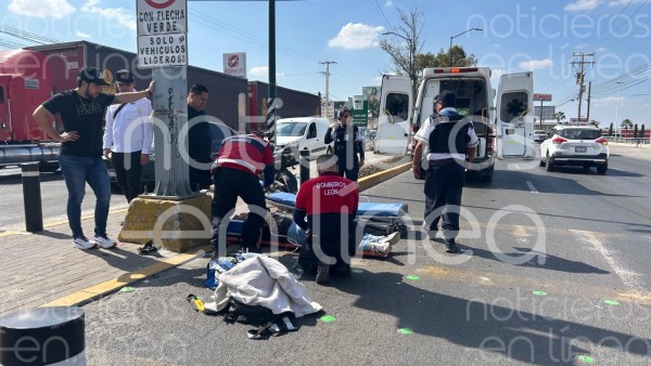Motociclista sufre aparatoso accidente en el bulevar Torres Landa[/caption]Ante los hechos otros conductores y testigos se acercaron para ayudar a la víctima y llamar a emergencias, mientras que el conductor del tráiler huyó tras ocasionar el accidente. Algunos conductores abanderaron el hecho, ya que el motociclista quedó tendido sobre el bulevar.Minutos después, paramédicos de bomberos llegaron y atendieron a la víctima y la trasladaron a un hospital en condiciones críticas de salud. Mientras tanto, remolcaron la motocicleta a una pensión de la ciudad. La Policía Vial llegó para apoyar y agilizar las maniobras de los paramédicos, mientras que los policías municipales realizaron recorridos de prevención para tratar de dar con el presunto responsable. Sin embargo, el conductor del tráiler logró darse a la fuga.[caption id="attachment_165628" align="aligncenter" width="1024"]