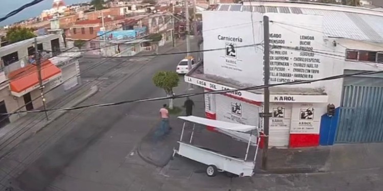 Aproximadamente a las 7 de la mañana del domingo pasado, dos hombres intentaron llevarse el carrito de tacos que estaba afuera de la carnicería Karol, a unas pocas calles del templo de Los Olivos.