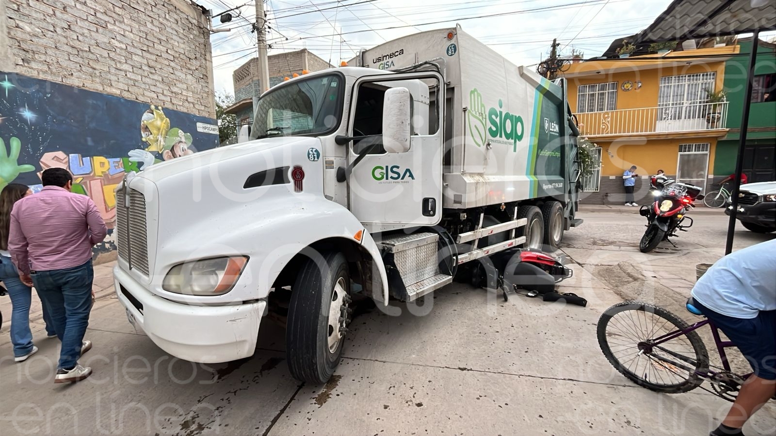 El hombre llevaba a sus dos hijos a la escuela primaria minutos antes del accidente. Al lugar llegaron elementos de la Policía Vial, quienes se quedaron a cargo de los temas legales. En el sitio se mencionó que “el conductor de la motocicleta fue el total responsable”, mientras que los familiares fueron atendidos por crisis nerviosa. [caption id="attachment_174377" align="alignnone" width="1600"]Accidente entre camión de basura y motocicleta deja crisis nerviosa en familia Accidente entre camión de basura y motocicleta deja daños y crisis nerviosa en familia; menores viajaban con su padre, todos resultaron ilesos.[/caption] Al llegar los familiares y no ver a sus hijos en el lugar, entraron en crisis nerviosa, imaginándose lo peor. Sin embargo, al confirmar que no presentaban lesiones graves, el padre decidió mandarlos a la escuela para seguir su rutina de estudios.Te puede interesar: Lo balean junto a su motocicleta en la colonia Los Ángeles‘Motosicarios’ matan a hombre frente a su esposa y a bordo de su auto en León/ED