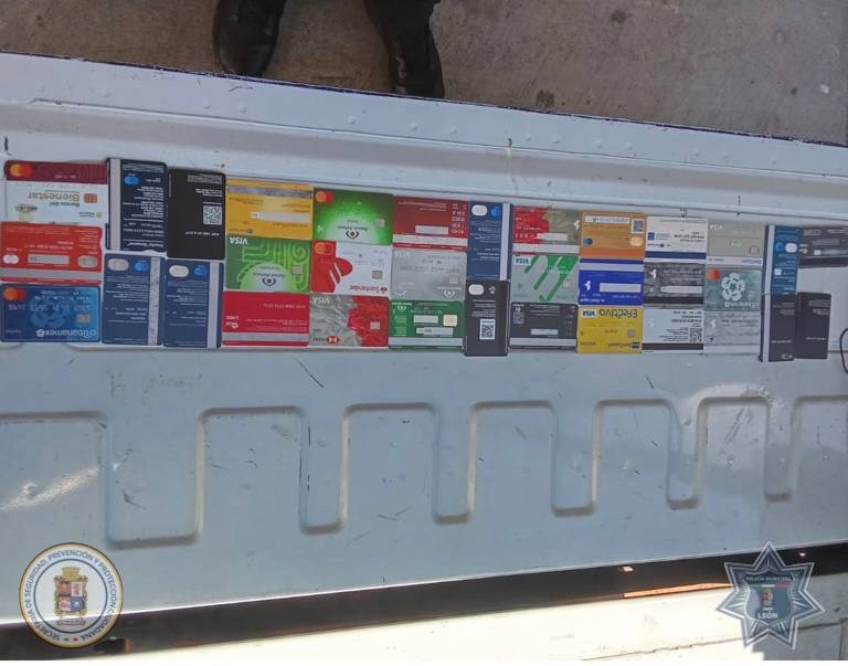Con esta información, unidades se trasladaron al lugar. Un guardia de seguridad señaló a los sospechosos y los entregó a las autoridades. Durante la inspección preventiva, tanto en su persona como en el vehículo, se aseguraron 34 tarjetas bancarias de diversas instituciones financieras, además de un envoltorio con marihuana.