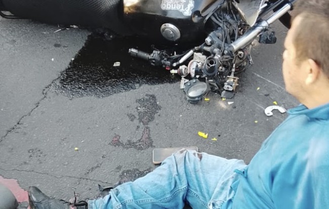 Según los primeros informes, el conductor presentaba heridas graves en ambas piernas, aparentemente provocadas por una caída de su vehículo de motor.