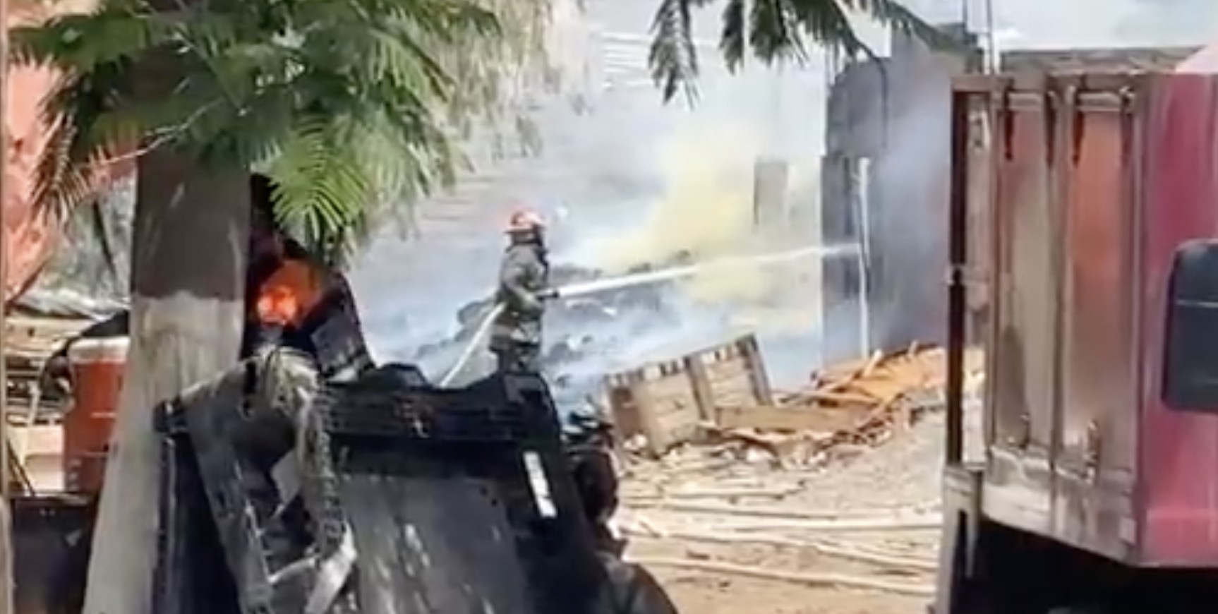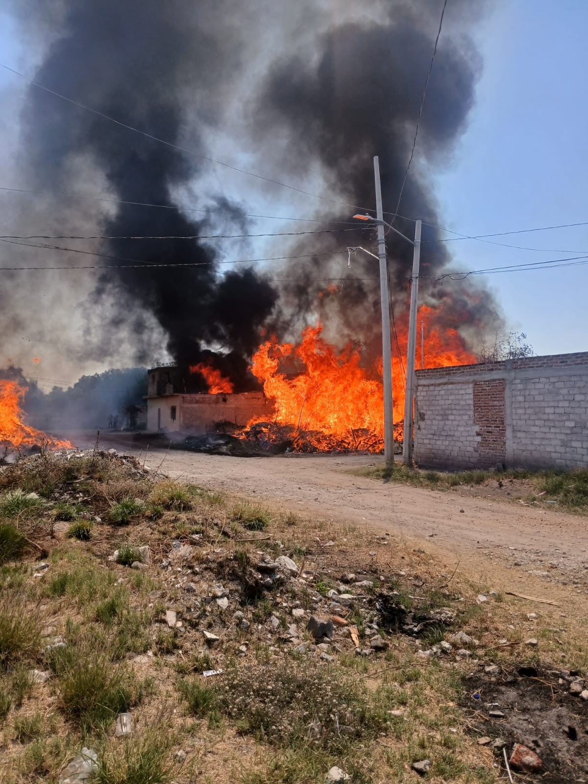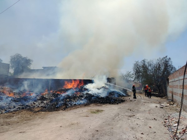 Celaya.- Momentos de angustia vivieron vecinos de la comunidad de San Martín de Camargo este martes, luego de que un fuerte incendio en un predio de tarimas se saliera de control y terminara por consumir dos viviendas cercanas.