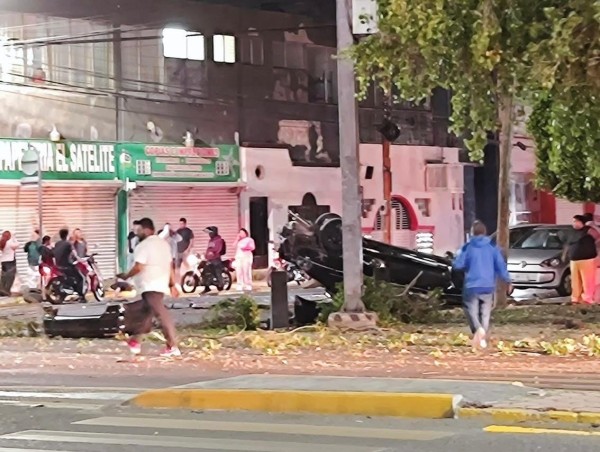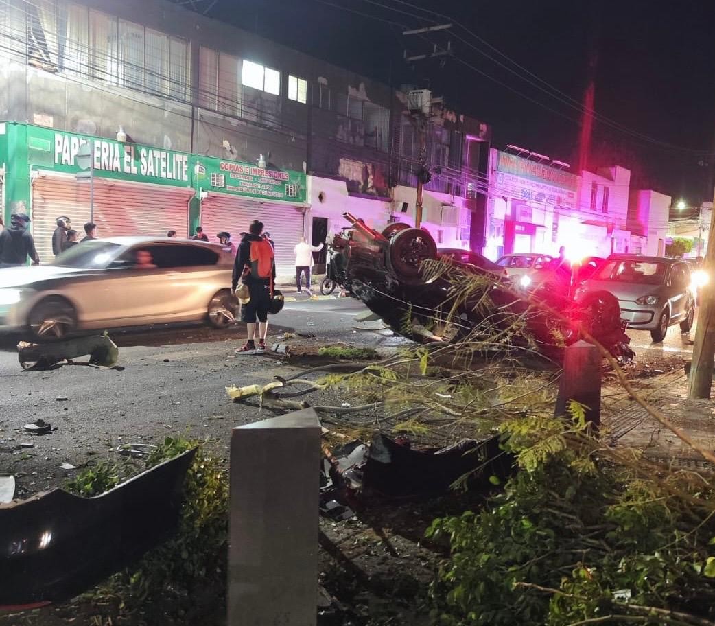 "Un vehículo pierde el control, sube al camellón, a parte de los estacionamientos, choca con una guarnición, de ahí se eleva, pega con un árbol, pega con otro árbol y un semáforo peatonal y terminó volcado en Francisco Juárez. Hay dos personas lesionadas, una en código rojo", explicó el director.