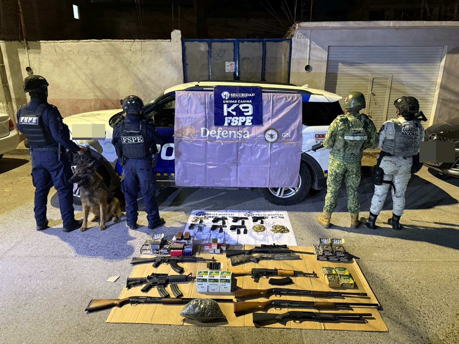 Este resultado se da a conocer solo unos días después de que también fuera localizado, en trabajo conjunto, en una empresa de paquetería en León, droga, así como otro envío que fue identificado con armas.