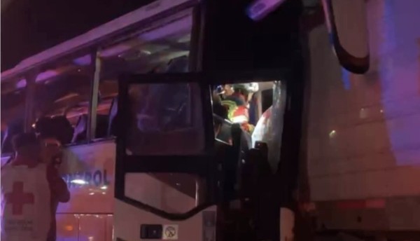 Tras el fuerte choque, la cabina del tráiler salió del camino, mientras que la parte frontal del autobús quedó prensada contra la unidad de carga. Testigos del percance realizaron llamadas al sistema de emergencias 911, lo que movilizó a elementos de Protección Civil, Bomberos, Seguridad Pública y la Guardia Nacional.